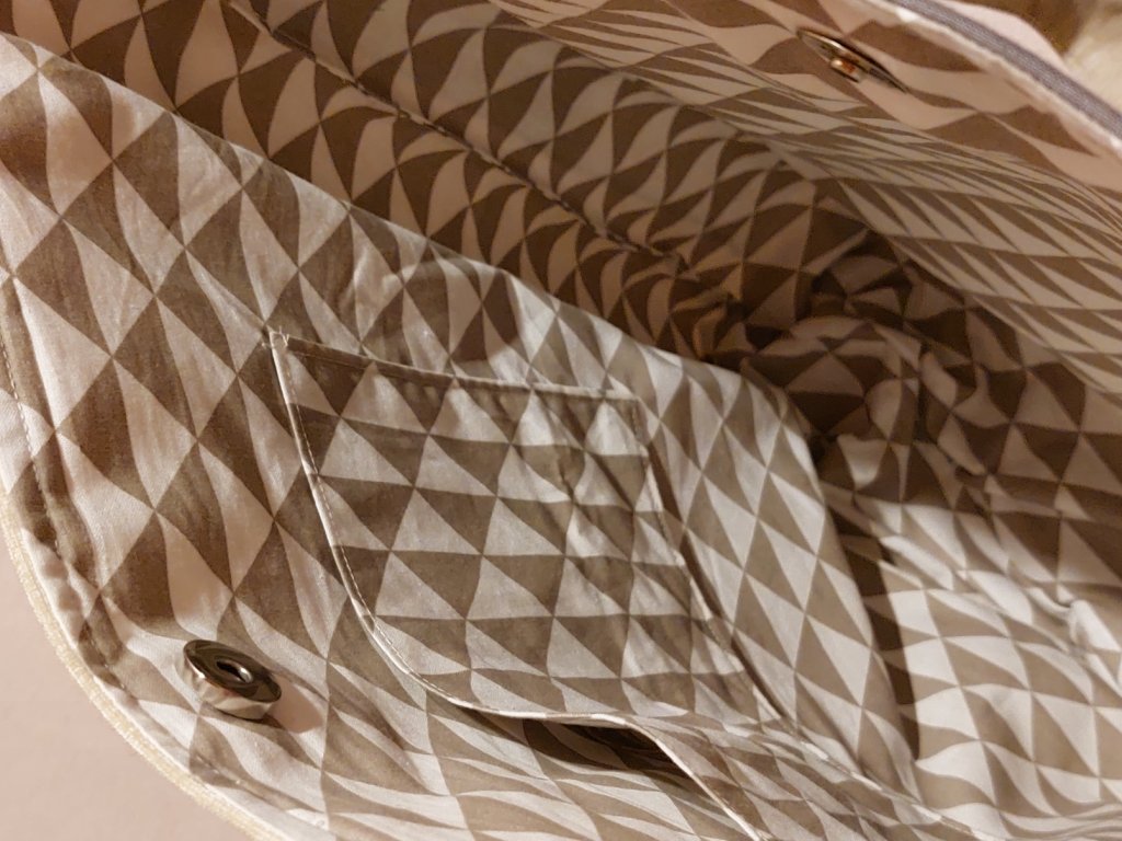 Vnitřní podšívka s kapsičkou, uzavíratelná na magnetek. Rozměry tašky horní šíře 37 cm x výška 37 cm